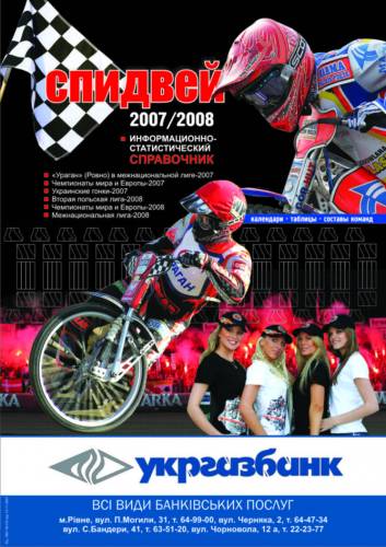 З 17 квітня шукайте та купуйте "Інофрмаційно-статистичний довідник "Спідвей-2007/2008" від "Спортивного Ярмарку"! В ньому ви зможете знайти: статистику гонок рівненського "Урагану" в 2007 році в міжнаціональній лізі, результати усіх без винятку чемпіонатів світу та Європи минулого року, статистику українських гонок минулого року, а також склади команд та календар гонок міжнаціональної та другої польської ліг за участю українських клубів "Шахтар" та "Спідвей-Рівне" ("Рівненські вепри"), розгорнуті календарі чемпіонатів світу та Європи на 2008 рік" З 17 квітня питайте в кіосках та у розповсюджовачів преси "Інформаційно-статистичний довідник "Спідвей-2007/2008"! Увага: Довідник видано російською мовою